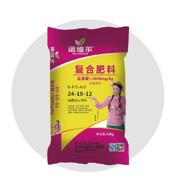 氨基酸復(fù)合肥料 | 24-10-12 S | ≥46.0 | 25kg/40kg/50kg |